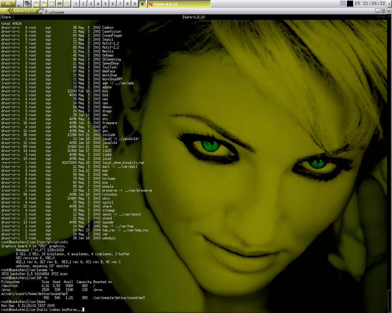 Ich hab dann noch eine Frage: Ich hab den Screenshot mit import -screen *Bildname* gemacht. Das geht, aber da ist dann ja noch der xterm mit auf'm Bild. Gibts da nicht ne andere Möglichkeit? (xwd hab ich schon probiert, aber da steig ich (noch) nicht durch... :ugly: )